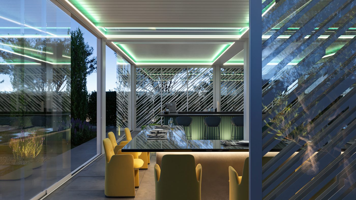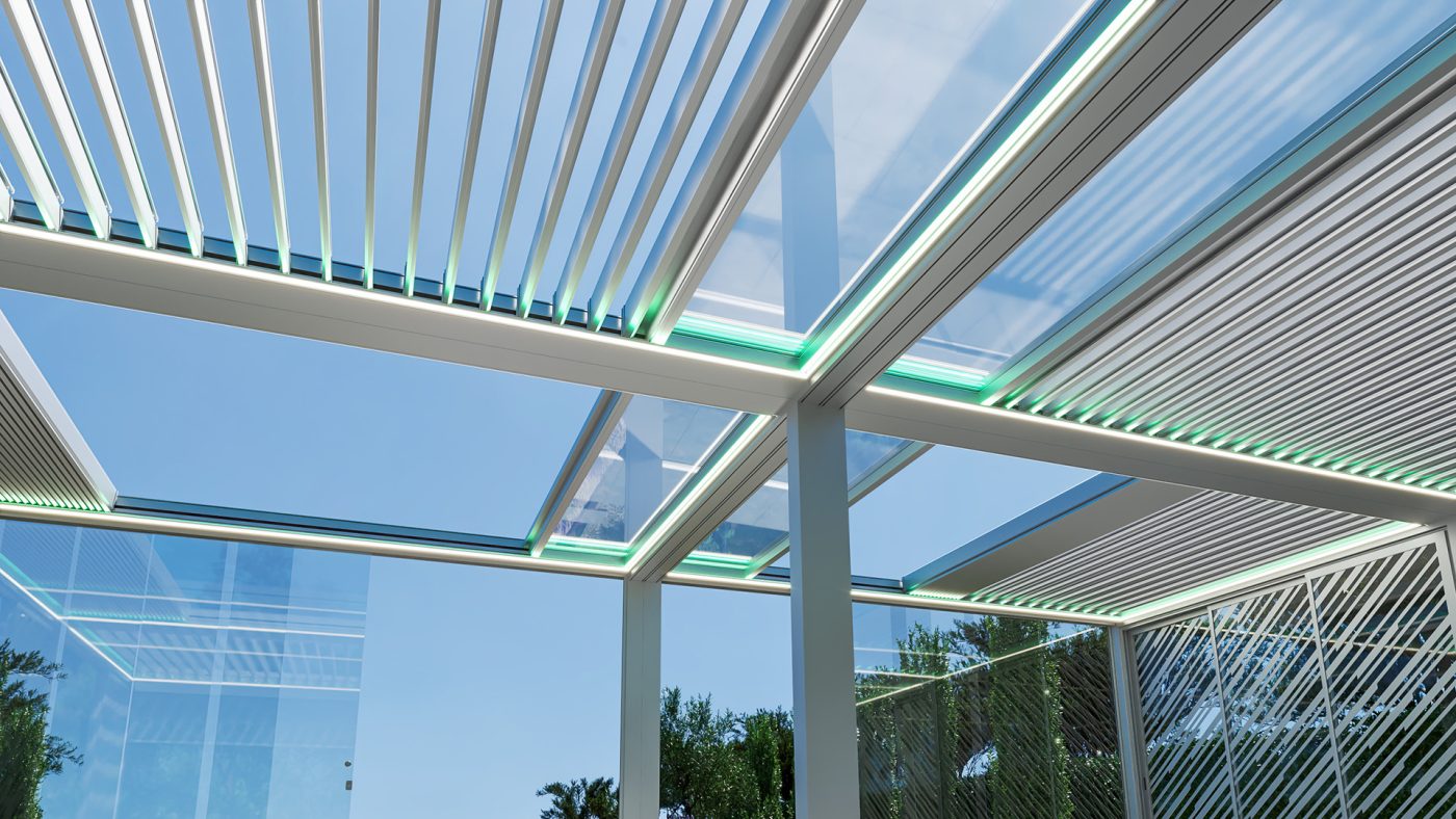 პერგოლა შესაძლებელია აღიჭურვოს, როგორც ლამელების, ასევე პერიმეტრის უმაღლესი ხარისხის LED განათებით, რომლის მართვაც ასევე დისტანციურად ხდება და განათების სიძლიერის მომატებით ან დაკლებით შესაძლებელია პერგოლას გარემოსთან და სიტუაციასთან მაქსიმალური შეხამება...